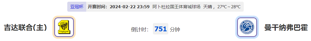 北京时间2月22日23:59,2023-24赛季亚冠联赛八分之一决赛次回合打响,吉达联合主场迎战曼干纳弗巴霍。吉达联合在各方面均占据优势的情况下,本场坐镇主场造势意图明显,这对球队大胜来说十分不利。