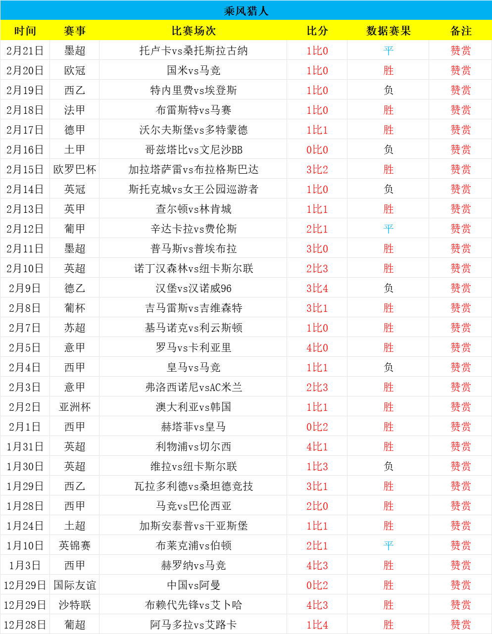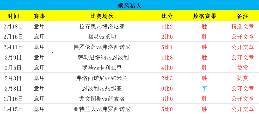 意甲8连胜(8胜1平)+赞赏30场6负!昨日公开的英超大胜拿下,赞赏的墨超数据打平!近赞赏30场6负+近各项79场19负!公开文章27场6负!精选27场7负!还是极佳的状态,今日多研究下,争取全胜,欢迎赞赏,再创佳绩!——今日重点参考乘胜追击!老铁们一起冲!