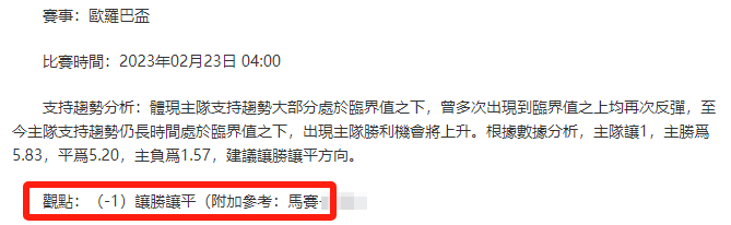 【解鎖內容為以上賽事支持趨勢預測圖展示,以及根據分析預測圖進行相對低機率方向觀點判斷。解鎖內容僅代表個人知識領域觀點,與本網站無關】