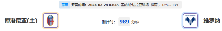 北京时间02月24日03点45分,23-24意甲联赛第26轮的一场比赛,博洛尼亚将坐阵雷纳托·达拉亚球场迎来维罗纳的挑战。博洛尼亚本季在意甲赛场上表现强势,其主场实力更是位居联赛第一,本轮面对刚刚在上轮比赛中逼平尤文的维罗纳,他们能否突破外界所施加的阻力,对维罗纳完成两连击,让小女子为各位小伙伴们一一解答。
