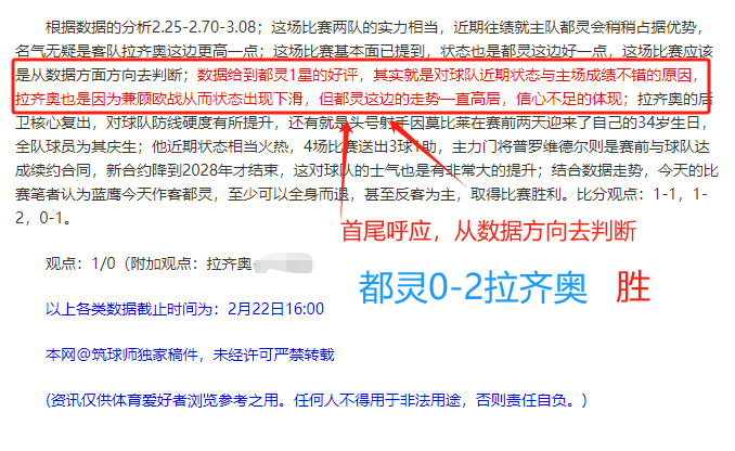 (温馨提示:观点回顾为已完场赛事的统计,并不能代表未来的观点预测结果走势,观点仅为其个人意见,与平.台无关。资讯仅供体育爱好者浏览,并不构成购.彩建议,任何人不得用于非法用途,请广大用户理性消费。)