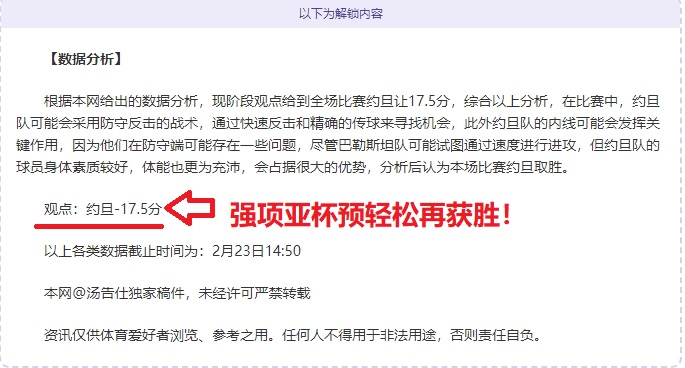 以下解锁内容包括:两队详细的战况分析+两队详细的数据分析+数据观点