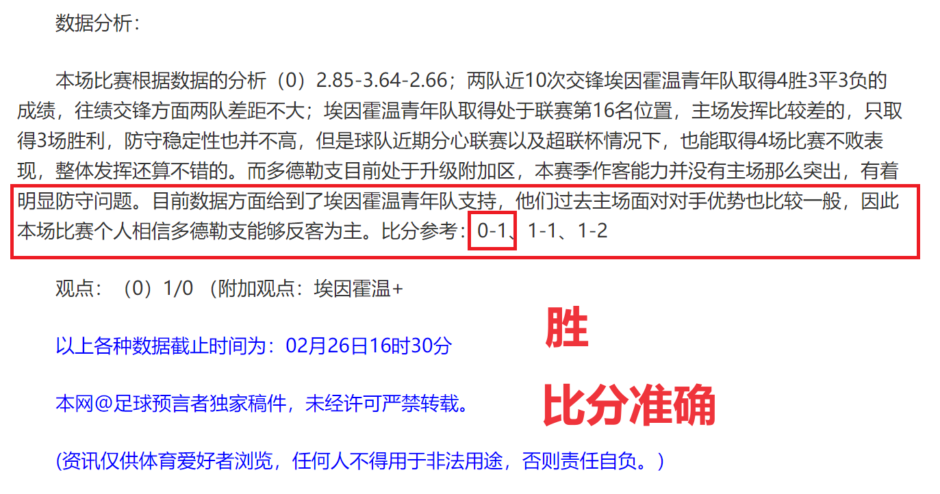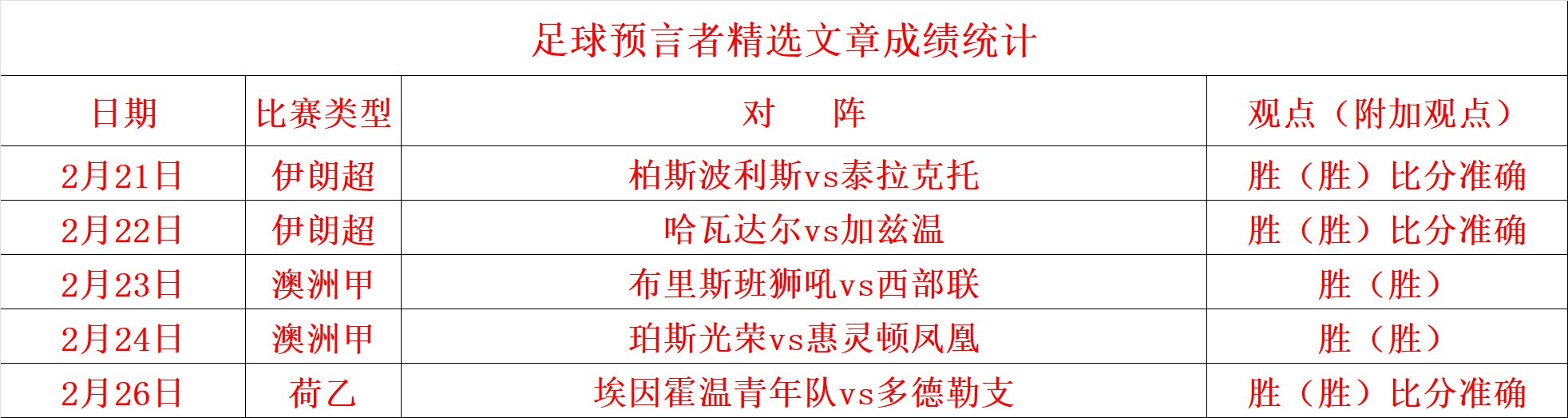 新的一周以一波全胜来开启,赞赏、精选和公推的比赛三战全胜;精选文章不经不觉迎来了5连胜的高光表现,其中3场比赛比分也精准拿捏;今天周中杯赛为主,笔者会保持高产的状态为大家精选出更多信心场事,大家也不要因为一点起伏而放弃关注,长期稳定的发挥才是大家想要结果;不想错过预言者每一场比赛,包周会是一个更合适的选择。
