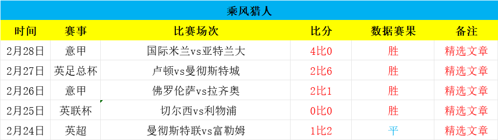 大家好,我是乘风猎人,职业数据分析师,足球经验丰富,研究足球数据数十载,期望能够乘风破浪,精准猎球制胜,欢迎朋友们长期关注!