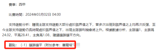 【解鎖內容為以上賽事支持趨勢預測圖展示,以及根據分析預測圖進行相對低機率方向觀點判斷。解鎖內容僅代表個人知識領域觀點,與本網站無關】