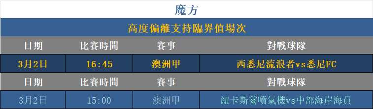利用「魔方關系」進行支持趨勢預測分析,超越臨界數值之上可視為低機率方向,此方式對比賽方向分析有顯著幫助效果。