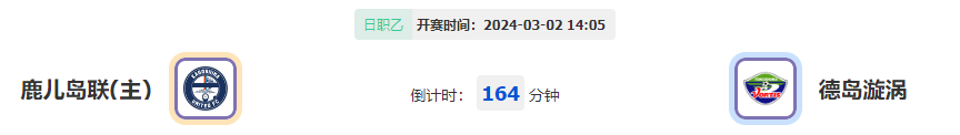 北京时间03月02日14:05,日职乙第2轮赛事鹿儿岛联vs德岛漩涡,鹿儿岛联作为升班马晋升到本联赛,他们能否在此役捍卫主场取得首胜?德岛漩涡上赛季顺利完成保级任务,他们能否在此役有力抗衡,此番挑战是否已做好准备?
