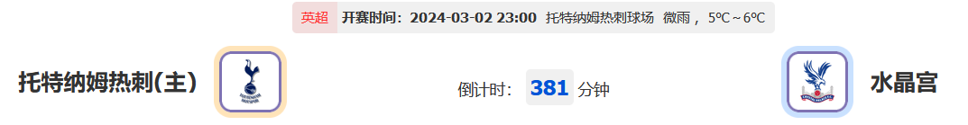 北京时间2024年3月2日23:00,英超联赛2023-2024赛季第27轮比赛,托特纳姆热刺vs水晶宫,主队本赛季依然有机会冲击身前的欧冠名次,本轮比赛回到对赛成色比较强势的主场迎战,面对着常年处于中游的绿叶队伍水晶宫,能否延续昔日交锋的强势拿下胜利?让我们一起拭目以待!