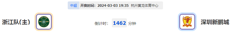 北京时间03月03日19:35,中超第1轮赛事浙江队vs深圳新鹏城,浙江队延续不败表现十分神勇,他们能否在此役捍卫主场重新出击?深圳新鹏城境况也很火热,现时又是面临强敌,此番挑战是否已做好准备?
