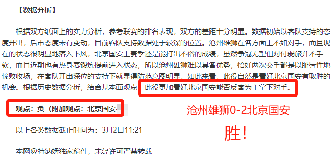 (温馨提示:观点回顾为已完场赛事的统计,并不能代表未来的观点预测结果走势,观点仅为其个人意见,与平.台无关。资讯仅供体育爱好者浏览,并不构成购.彩建议,任何人不得用于非法用途,请广大用户理性消费。)
