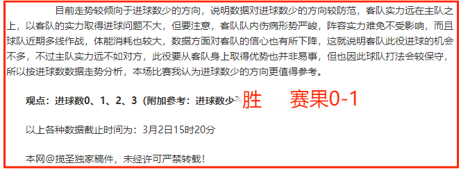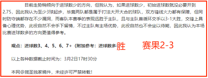 (温馨提示:观点回顾为已完场赛事的统计,并不能代表未来的观点预测结果走势,观点仅为其个人意见,与平.台无关。资讯仅供体育爱好者浏览,并不构成购.彩建议,任何人不得用于非法用途,请广大用户理性消费。)