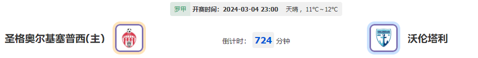 北京时间03月04日23时00分,罗甲2023-2024赛季第29轮比赛,圣格奥尔基塞普西vs沃伦塔利,主队现时拿回二连不败士气层面是稍有回升,本次主场迎战还在下游挣扎的沃伦塔利,能否顺利捍卫主场继续抢分抢胜?让我们拭目以待!