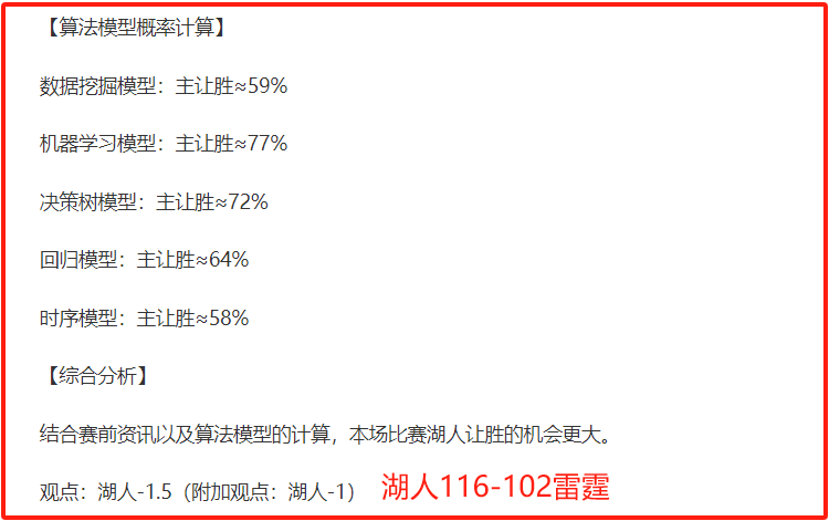 昨天NBA模型的成绩是不错的,湖人与雷霆的比赛,成功判断出雷霆是无法限制湖人的内线冲击;拿下雷霆没有问题;至于篮网与灰熊的比赛,卡了1.5分,不过在临场数据发生了变化,变化后的数据倒是打出来了。今天继续以NBA为主题,希望大家喜欢。