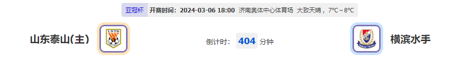 北京时间3月6日的傍晚18点00分,亚冠杯赛事的1/4决赛的首回合较量即将继续迎来一场焦点十足的对决!——由中超传统豪门山东泰山将会坐镇济南奥体中心体育场迎来日职传统豪门横滨水手的挑战!在上轮联赛刚刚遭遇失利的横滨能否迅速调整好状态客场全身而退?还是在上一轮亚冠实现超级逆转的山东泰山,能够借助主场之势击溃对手先拔头筹?