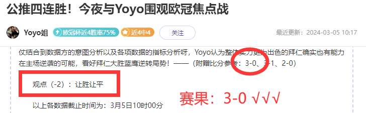 【温馨提示:观点回顾为已完场赛事的统计,并不能代表未来的观点预测结果走势,观点仅为其个人意见,与平.台无关。资讯仅供体育爱好者浏览,并不构成购.彩建议,任何人不得用于非法用途,请广大用户理性消费。另外,Yoyo一直以来只在本网前瞻发表文章和提供参考建议,其他任何网站的都不是本人哦!请大家认真鉴别么么哒!】