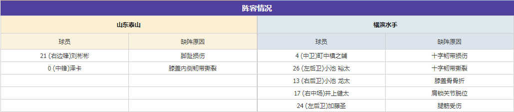 而且结合到对赛双方在近年来的为数不多的4次交锋也能发现呀,山东泰山在面对横滨水手的时候取得了2胜2负的交锋记录,可见对赛双方的“分胜负”欲望还是非常强烈的,但在上个赛季的两次亚冠交手,山东泰山均以失利告终,球队可能在心理层面上会处于劣势?