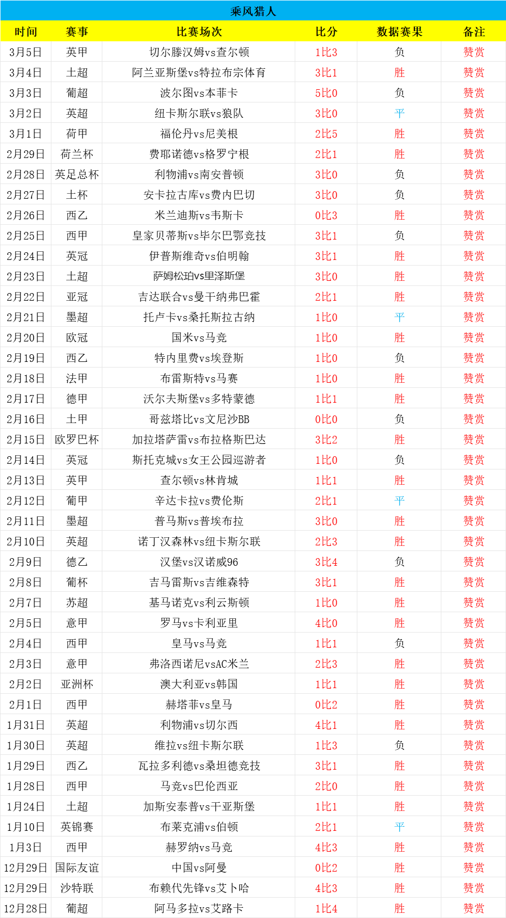 大家好,我是乘风猎人,职业数据分析师,足球经验丰富,研究足球数据数十载,期望能够乘风破浪,精准猎球制胜,欢迎朋友们长期关注!