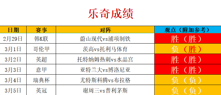 (温馨提示:观点回顾为已完场赛事的统计,并不能代表未来的观点预测结果走势,观点仅为其个人意见,与平.台无关。资讯仅供体育爱好者浏览,并不构成购.彩建议,任何人不得用于非法用途,请广大用户理性消费。)