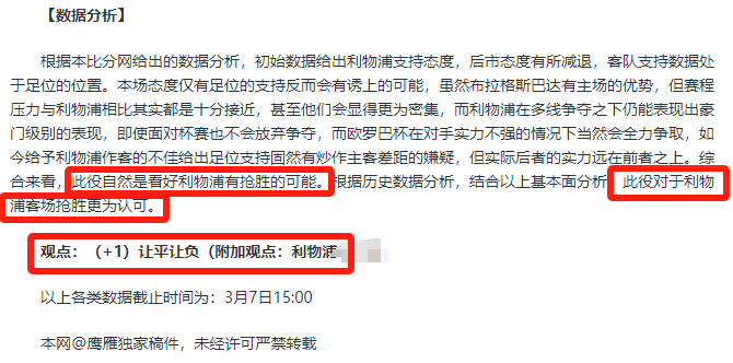 (温馨提示:观点回顾为已完场赛事的统计,并不能代表未来的观点预测结果走势,观点仅为其个人意见,与平.台无关。资讯仅供体育爱好者浏览,并不构成购.彩建议,任何人不得用于非法用途,请广大用户理性消费。)