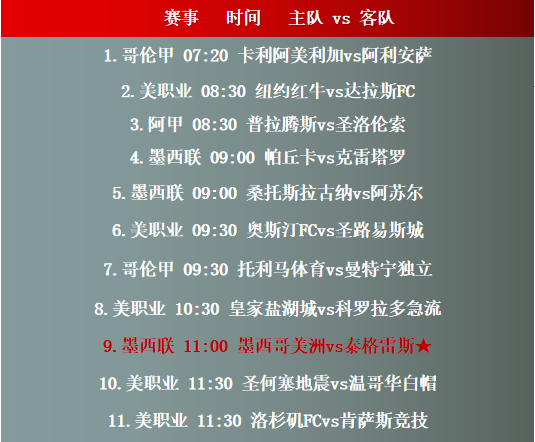赛事前瞻:本文提供03月10日07时20分-11时30分时段的11场足球赛事走势分析表,当中包括美职业、阿甲、墨西联、哥伦甲等赛事提供分析参考,具备较高的参考价值。主要关注赛程如下: