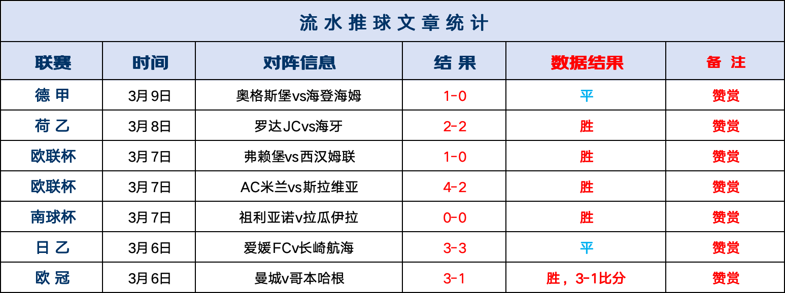 【日韩教主】独家日韩比赛一手资讯,完善的比赛模型库,解读精准独到!赞赏回顾:流水昨天三线全部不败,此前9场不败,精选曼联2-0埃弗顿+公开女王巡游者0-2米堡,奥格斯堡1-0海登海姆。流水赞赏曾连续6周周榜第一,更是有156天总体正确率近7成(不含走)的长期稳定发挥,今天继续一起采摘果实!!!