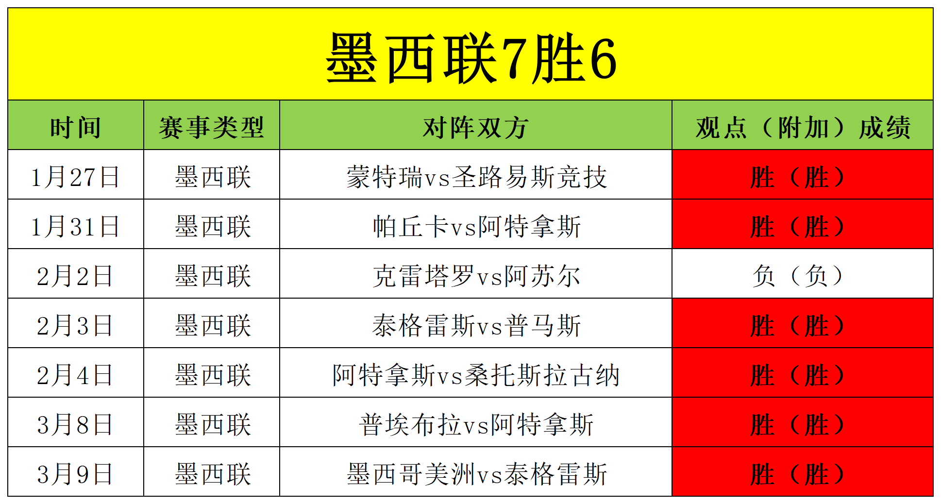 昨天有些落差,但没关系,影响不大,笔者整体战绩稳定,今天我们再接再厉,务必把失去的拿回来。前面笔者分享了2场英超和一场意甲的比赛,接下来重点分享一场墨西联的比赛,对于墨西联笔者有自己独到的见解,墨西联近期的成绩也证明了笔者的分析能力到位,墨西联近7胜6,目前4连胜,今天冲5连胜。