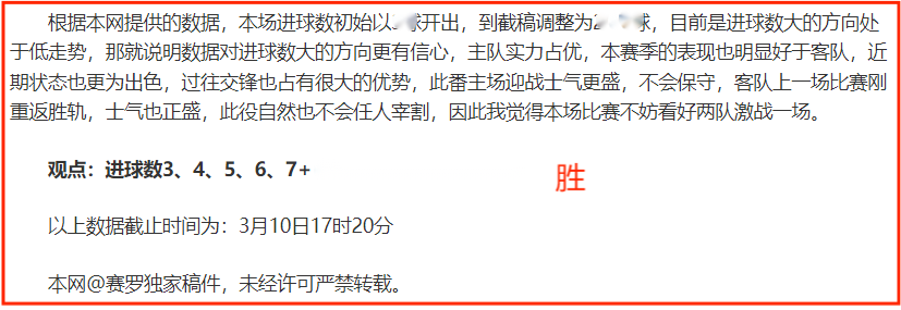 (温馨提示:观点回顾为已完场赛事的统计,并不能代表未来的观点预测结果走势,观点仅为其个人意见,与平.台无关。资讯仅供体育爱好者浏览,并不构成购.彩建议,任何人不得用于非法用途,请广大用户理性消费。)