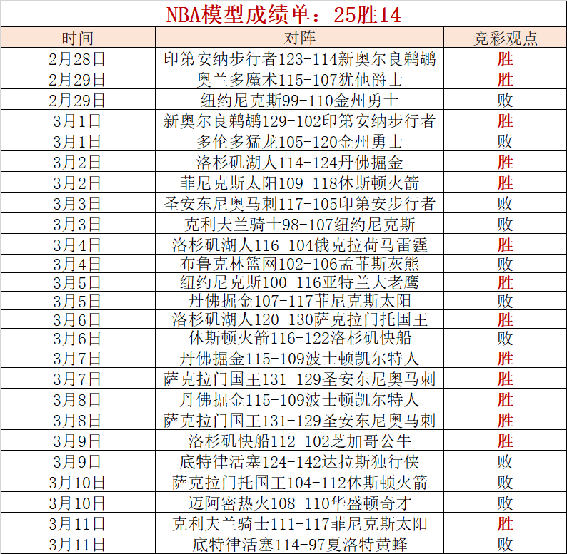 昨天的NBA模型发挥还算不错,骑士与太阳的比赛,骑士果然没有办法限制杜兰特的发挥,拿下胜利是硬实力。NBA模型25胜14。今晚继续以NBA为主题,希望大家喜欢。