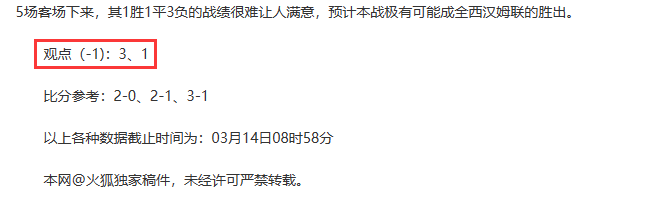 观点回顾为已完场赛事的统计,并不能代表未来的观点预测结果走势,观点仅为其个人意见,与平.台无关。资讯仅供体育爱好者浏览,并不构成购.彩建议,任何人不得用于非法用途,请广大用户理性消费。