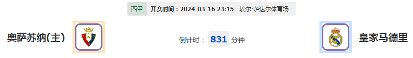 北京时间2024年3月16日23:15,2023-2024 西班牙甲组联赛,奥萨苏纳vs皇家马德里,此役是西甲赛季第29轮的较量,奥萨苏纳上轮联赛客场0-2不敌赫罗纳,被对阵终结此前4轮不败战绩,此役坐镇主场迎战豪门皇家马德里,两队如何对峙?下面由本作者为大家做详细阐述。
