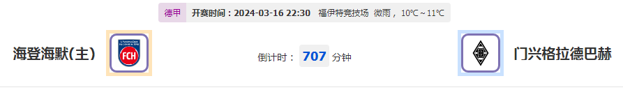 周六 赛事018:海登海默vs门兴格拉德巴赫