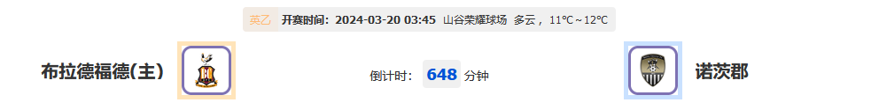 北京时间03月20日03:45,2023-2024 英格兰乙组联赛,布拉德福德vs诺茨郡,两队目前排名差距不大,今天比赛到底谁能更胜一筹?