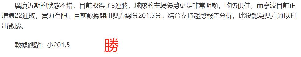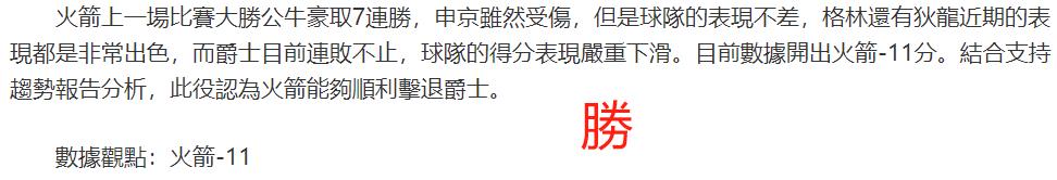(溫馨提示:觀點回顧為已完場賽事的統計,並不能代表未來的觀點預測結果走勢,觀點僅為其個人意見,與平.臺無關。資訊僅供體育愛好者瀏覽,並不構成購.彩建議,任何人不得用於非法用途,請廣大用戶理性消費。)