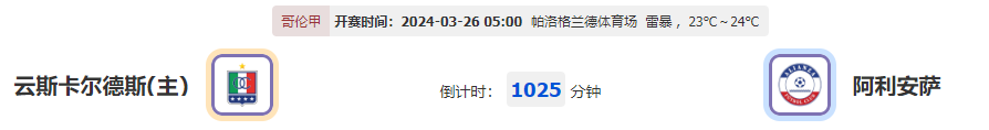 北京时间03月26日06:00,哥伦甲第13轮赛事云斯卡尔德斯vs阿利安萨,云斯卡尔德斯开局表现相当出色,他们能否在此役捍卫主场再下一城?阿利安萨表现不稳又遭遇不胜打击,他们能否在此役有力抗衡,此番挑战是否已做好准备?