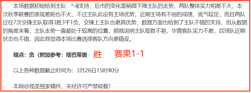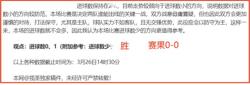 (温馨提示:观点回顾为已完场赛事的统计,并不能代表未来的观点预测结果走势,观点仅为其个人意见,与平.台无关。资讯仅供体育爱好者浏览,并不构成购.彩建议,任何人不得用于非法用途,请广大用户理性消费。)