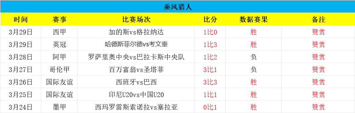 昨晚大型联赛回归!大捷赞赏双胜比分+王牌意甲18场4负!昨日赞赏的英冠考文垂,进球数多拿下,且完美胜比分1比3,而西甲这场成功再胜比分1比0!长期赞赏69场21负+长线近各项189场61负,是极强的状态,今日全力研究,争取继续拿下全胜,欢迎赞赏,再创佳绩!——今日重点参考乘胜追击!老铁们一起冲!