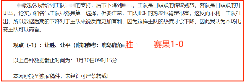 (温馨提示:观点回顾为已完场赛事的统计,并不能代表未来的观点预测结果走势,观点仅为其个人意见,与平.台无关。资讯仅供体育爱好者浏览,并不构成购.彩建议,任何人不得用于非法用途,请广大用户理性消费。)