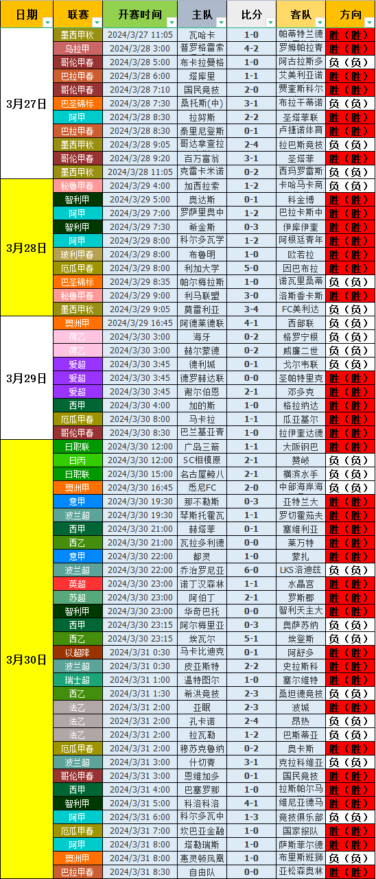 昨天数据表现炸裂,整体32胜20,净增+12!昨天数据中,早场的表现非常的出色,其中日职联一胜一负表现平稳!西甲和博波兰超的表现都非常的完美!晚场的表现同样炸裂,其中意甲全部完美打出,非常的精彩!当然英超也没有让人失望!夜场的阿甲一胜一负表现平稳!而厄瓜甲、哥伦甲和巴拉甲都完美的打出,非常的精彩!