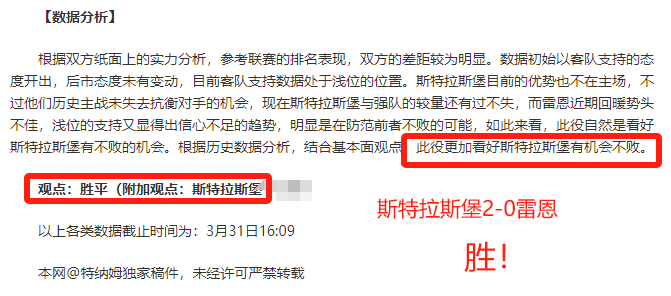 (温馨提示:观点回顾为已完场赛事的统计,并不能代表未来的观点预测结果走势,观点仅为其个人意见,与平.台无关。资讯仅供体育爱好者浏览,并不构成购.彩建议,任何人不得用于非法用途,请广大用户理性消费。)
