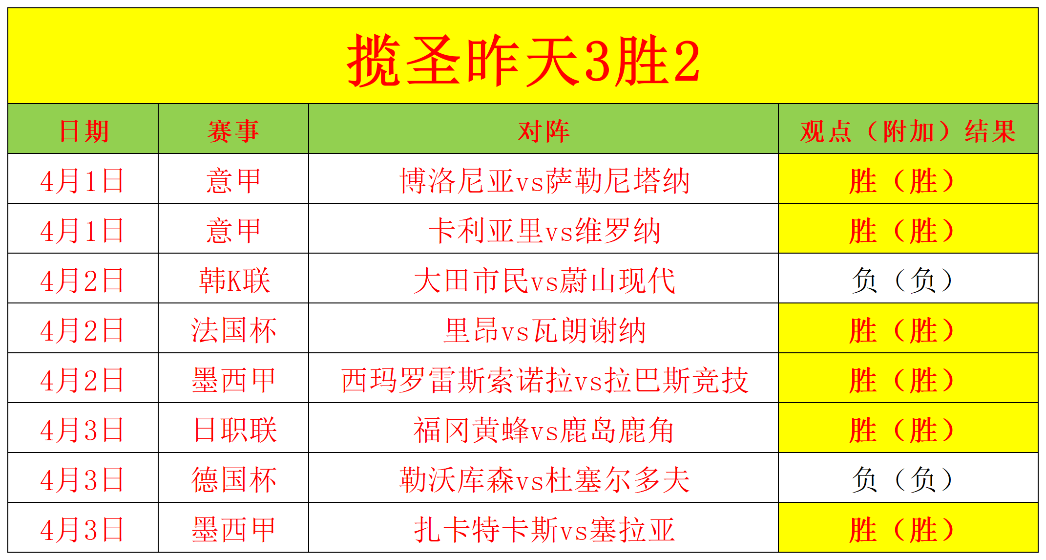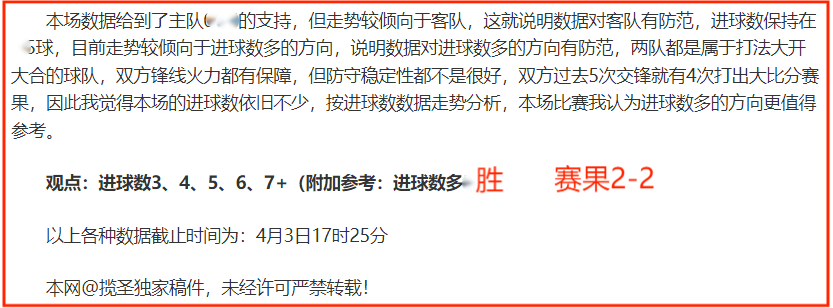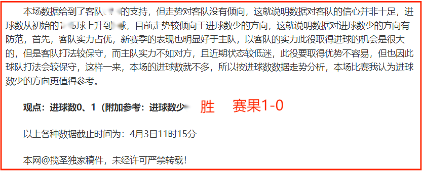 (温馨提示:观点回顾为已完场赛事的统计,并不能代表未来的观点预测结果走势,观点仅为其个人意见,与平.台无关。资讯仅供体育爱好者浏览,并不构成购.彩建议,任何人不得用于非法用途,请广大用户理性消费。)