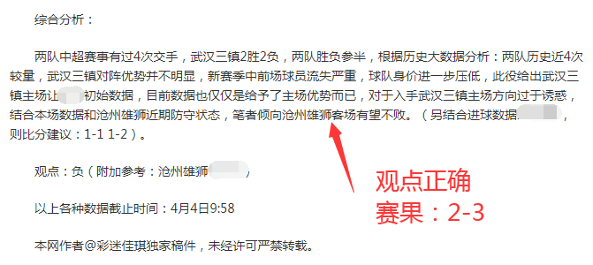 昨日中超和英超赛事组合,中超赛事:武汉三镇主场2-3不敌沧州雄狮,观点方向正确;英超赛事:切尔西主场4-3力克曼彻斯特联,观点方向再次正确。