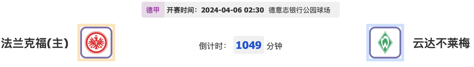 北京时间4月6日凌晨02:30,德甲第28轮的比赛将会继续展开,法兰克福队将会在主场迎来不莱梅队的挑战,球队能否在主场顺利拿下3分呢?