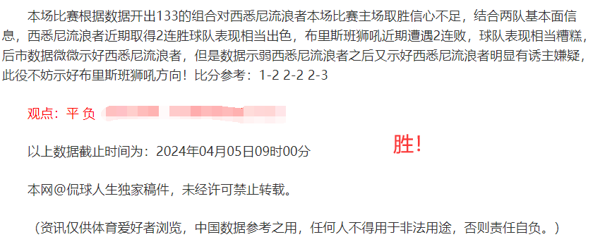 (温馨提示:观点回顾为已完场赛事的统计,并不能代表未来的观点预测结果走势,观点仅为其个人意见,与平.台无关。资讯仅供体育爱好者浏览,并不构成购.彩建议,任何人不得用于非法用途,请广大用户理性消费。)