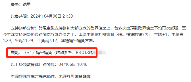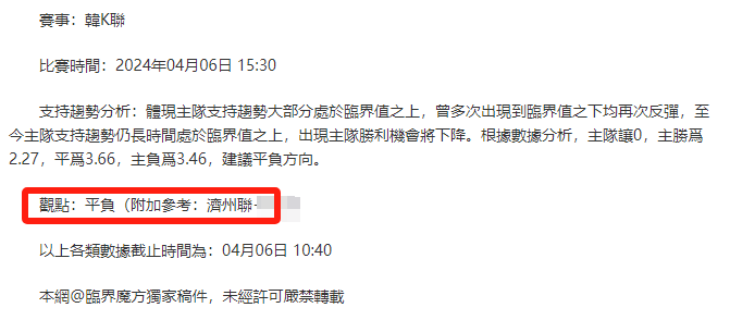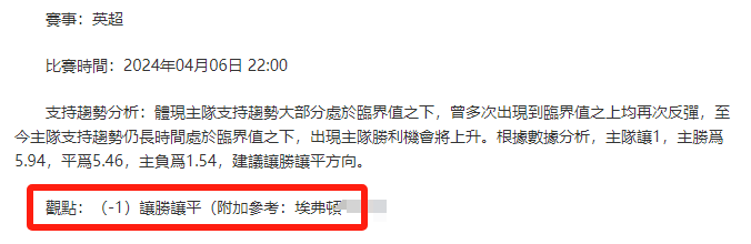 【解鎖內容為以上賽事支持趨勢預測圖展示,以及根據分析預測圖進行相對低機率方向觀點判斷。解鎖內容僅代表個人知識領域觀點,與本網站無關】
