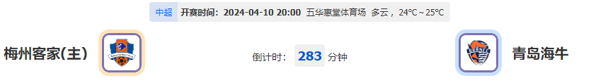 北京时间2024年04月10日 20时00分,中超联赛第5轮的赛事,梅州客家持续下滑毫无状态优势,青岛海牛连败下会有反击底气?让我们一起拭目以待!
