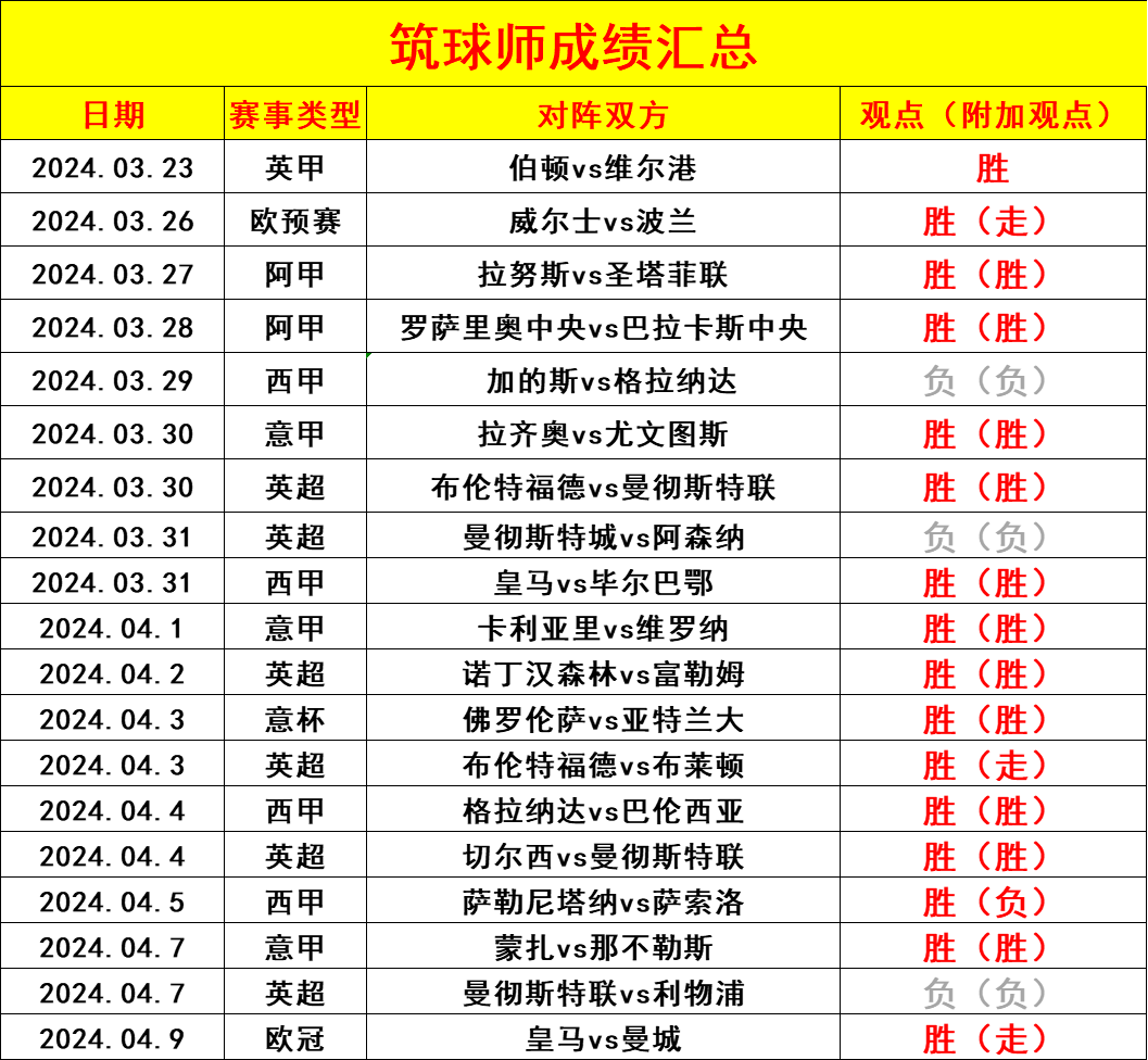 (温馨提示:观点回顾为已完场赛事的统计,并不能代表未来的观点预测结果走势,观点仅为其个人意见,与平.台无关。资讯仅供体育爱好者浏览,并不构成购.彩建议,任何人不得用于非法用途,请广大用户理性消费。)