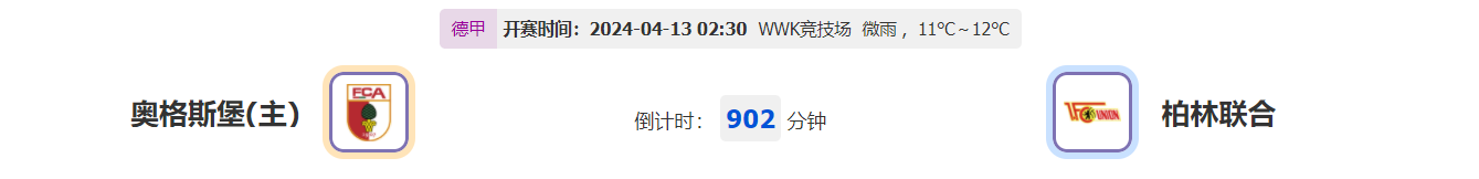 看点:奥格斯堡近期连续2场比赛不胜,此役主场作战能否及时调整?柏林联合上一场主场0-1不敌勒沃库森,此役作客能否全身而退?