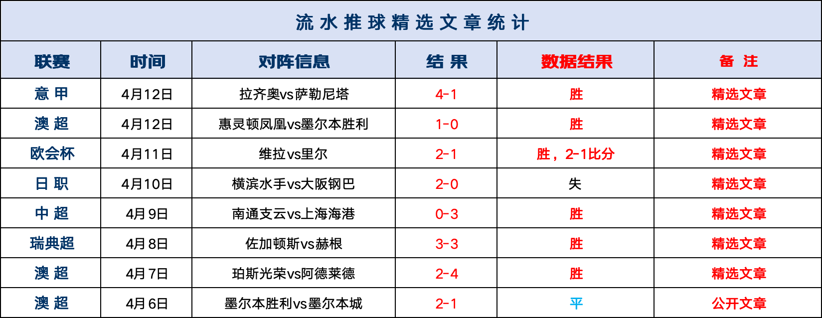 【日韩教主】独家日韩比赛一手资讯,完善的比赛模型库,解读精准独到!回顾:流水精选2场全部拿下,惠灵顿凤凰1-0墨尔本胜利,拉齐奥4-1萨勒尼塔,方向全部强势跑出。流水赞赏曾连续6周周榜第一,更是有156天总体正确率近7成(不含走)的长期稳定发挥,今天继续一起采摘果实!!!