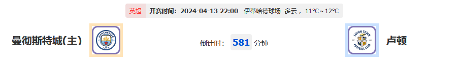 北京时间2024年04月13日22点00分,两队整体实力差距实在太大,今天比赛曼城能否取得完胜?