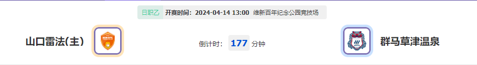 北京时间2024年4月14日13:00,日本足球职业乙级联赛,本场比赛是山口雷法主场对战群马温泉,两队都有很强的战意,那么本场比赛谁能拿下比赛的胜利?